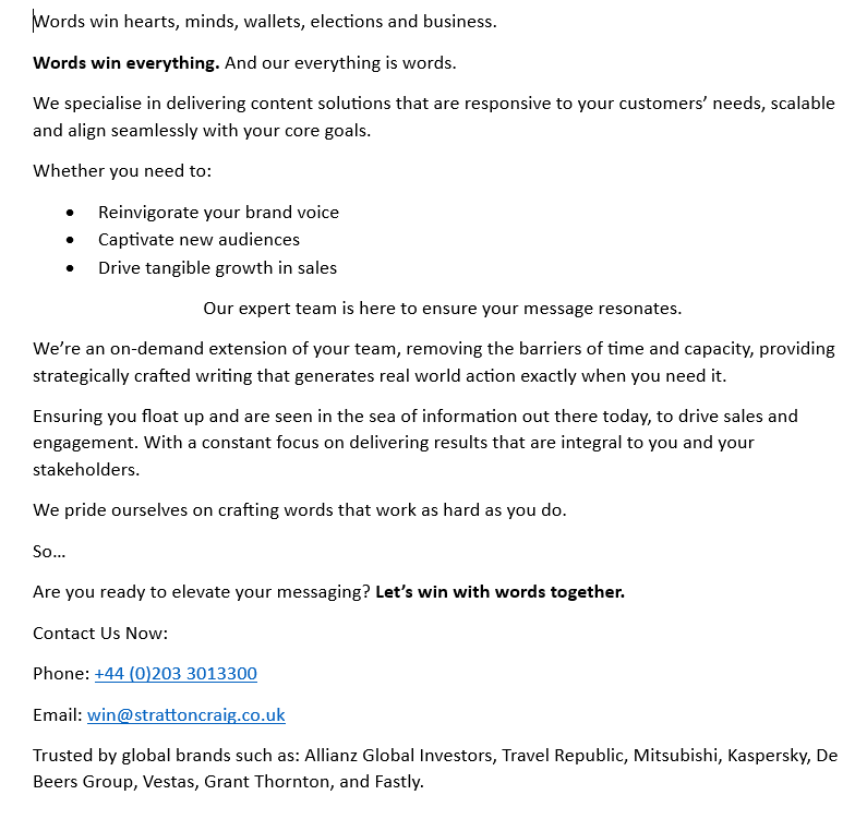 Click on an image to get an enhanced view and more information Website Copy Instagram Highlights Magazine Ad Cold Outreach Email Sales Letter Newsletter Landing Page LinkedIn About Section Product Descriptions Email Promotion